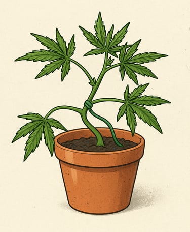 Objetivo: Crear un dosel plano y ancho con múltiples colas para maximizar la luz y el rendimiento — hasta un 40 % más en cultivos de interior.